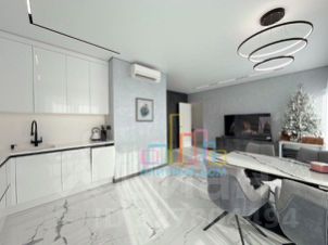 Просторная 38 м²: кухня 10 м², совмещённый санузел, большая гардеробная. Мебель (Германия): кухня, шкафы, двухспальная кровать с ортопедическим матрасом. Техника: кондиционер, холодильник, плита, стиралка, посудомойка, бойлер, ТВ, Wi-Fi, тёплые полы, немецкая сантехника, фильтр воды.