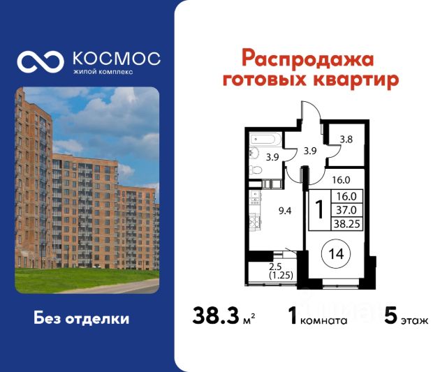 Продаётся 1-комнатная квартира в сданном доме (Корпус 7), срок сдачи: 2-кв. 2025, общей площадью 38.25 кв.м., на 5 этаже. ЖК "Космос" - новое место для жизни, в котором сочетаются отличная экология, удобное расположение, креативные решения архитектуры и функциональные планировки квартир. Строительство жилого комплекса ведётся при проектном финансировании Сбербанка. ЖК "Космос" расположен в микрорайоне Авиационный (Домодедово), в 24 километрах от МКАД по Каширскому шоссе. Проект будет состоять из 7 корпусов высотой 12 этажей. На первых этажах домов запланировано открытие необходимых для жителей объектов торговой и социальной инфраструктуры, в том числе магазинов, кафе, медицинского центра. В микрорайоне Авиационный также есть всё необходимое для комфортной жизни - здесь находятся детские сады, школы, высшие учебные заведения, магазины, поликлиники и медицинские центры, спортивный клуб, ТЦ "Торговый город". Помимо этого, жители ЖК "Космос" смогут пользоваться развитой инфраструктурой г.о. Домодедово - до него можно добраться за 20 минут на автомобиле или электричке. Одна из особенностей ЖК "Космос" - отличное экологическое состояние локации. В 10 минутах ходьбы от комплекса находится благоустроенный парк "Взлёт" с красивым прудом Лесным, здесь планируется дальнейшее благоустройство территории. Рядом с "Космосом", на площади Гагарина, будут проходить городские мероприятия. Проект отличается удобной транспортной доступностью - до МКАД можно добраться за 20-25 минут. Около жилого комплекса находятся остановки общественного транспорта, в пешей доступности - ж/д станция "Авиационная" Павелецкого направления. На придомовой территории ЖК "Космос" предусмотрено устройство парковочных мест численностью 544 машино-места, в том числе для маломобильных групп населения. 1-комнатная квартира в готовой новостройке в Домодедово.