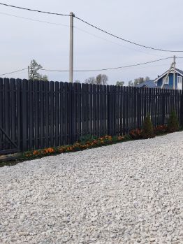 Забор - комбинированный: кирпичный + живая изгородь.