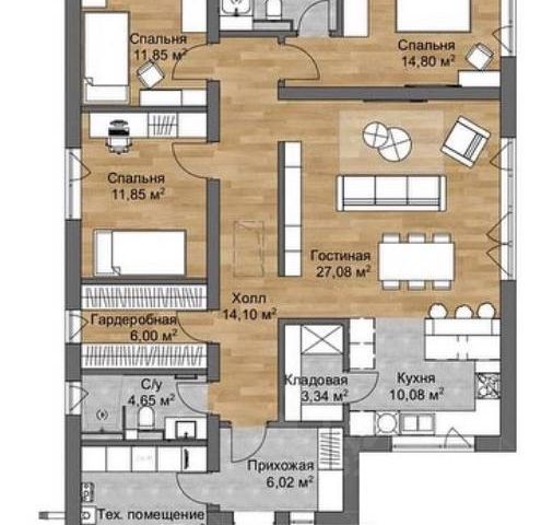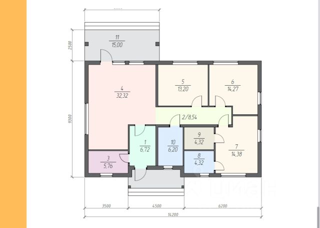 Общая площадь дома 152 кв.м. 6 комнат, 2 санузла.