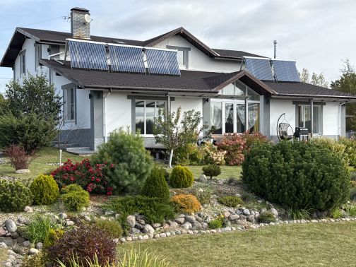 На участке помимо гаража парковка, мощеная плиткой на 2-3 машины, зона гриль с мангалом, печью и раковиной. Въезд на участок через автоматические откатные ворота. Участок облагорожен газон, плодовые деревья, клумбы и цветники, много хвойников.