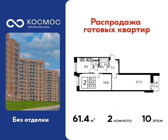 Продаётся 1-комнатная квартира в сданном доме (Корпус 3), срок сдачи: 2-кв. 2025, общей площадью 38.30 кв.м., на 10 этаже. ЖК "Космос" - новое место для жизни, в котором сочетаются отличная экология, удобное расположение, креативные решения архитектуры и функциональные планировки квартир. Строительство жилого комплекса ведётся при проектном финансировании Сбербанка. ЖК "Космос" расположен в микрорайоне Авиационный (Домодедово), в 24 километрах от МКАД по Каширскому шоссе. Проект будет состоять из 7 корпусов высотой 12 этажей. На первых этажах домов запланировано открытие необходимых для жителей объектов торговой и социальной инфраструктуры, в том числе магазинов, кафе, медицинского центра. В микрорайоне Авиационный также есть всё необходимое для комфортной жизни - здесь находятся детские сады, школы, высшие учебные заведения, магазины, поликлиники и медицинские центры, спортивный клуб, ТЦ "Торговый город". Помимо этого, жители ЖК "Космос" смогут пользоваться развитой инфраструктурой г.о. Домодедово - до него можно добраться за 20 минут на автомобиле или электричке. Одна из особенностей ЖК "Космос" - отличное экологическое состояние локации. В 10 минутах ходьбы от комплекса находится благоустроенный парк "Взлёт" с красивым прудом Лесным, здесь планируется дальнейшее благоустройство территории. Рядом с "Космосом", на площади Гагарина, будут проходить городские мероприятия. Проект отличается удобной транспортной доступностью - до МКАД можно добраться за 20-25 минут. Около жилого комплекса находятся остановки общественного транспорта, в пешей доступности - ж/д станция "Авиационная" Павелецкого направления. На придомовой территории ЖК "Космос" предусмотрено устройство парковочных мест численностью 544 машино-места, в том числе для маломобильных групп населения.