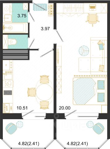 Продаётся 1-комнатная квартира в строящемся доме (Текстильщиков, 45), срок сдачи: I-кв. 2028, общей площадью 40.74 кв.м., на 13 этаже.