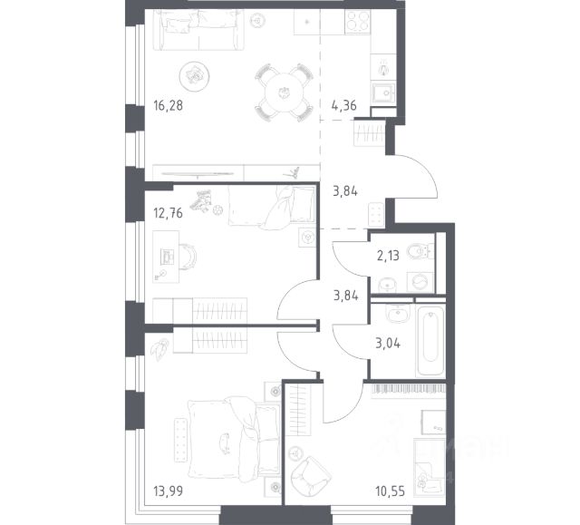Строим кварталы для жизни с заботой о будущем. Предлагается 1-комнатная квартира комфорт-класса площадью 34,56 кв.м в корпусе 7.1 на 16-м этаже, в жилом комплексе "Прибрежный Парк". Застройщик сдает квартиры с отделкой в нескольких вариантах: предчистовая, готовая, улучшенная или вариант без нее. Последний подойдет тем, кто хочет создать свой уникальный интерьер и ничем себя не ограничивать. А если не хочется тратить время на ремонт, можно выбрать опцию — с отделкой. Перед тем как отдать ключи, застройщик установит натяжные потолки, поклеит обои под покраску, положит ламинат светлых тонов, а в санузлах — керамическую плитку и керамогранит. Приобрести квартиру возможно по специальным акциям от застройщика, с текущими условиями акций можно ознакомиться в блоке "Акций". Цена динамическая и может отличаться, уточняйте актуальность у застройщика. Жилой комплекс "Прибрежный Парк" находится в 9 км от МКАДа. Корпуса проекта — дома высотой 1217 этажей с комбинированными фасадами из кирпича и фиброцементных плит. Территорию "Прибрежного Парка" огибает река Пахра, рядом располагается Видновский парк. Здесь можно кататься на велосипедах, заниматься бердвотчингом, устраивать пикники на лужайках и любоваться деревьями из окон квартиры. Внутри проекта появятся спорткомплекс с бассейном, поликлиника, школа и 3 детских сада, один из которых уже открыт. Оставить авто можно на паркинге за пределами жилого комплекса. Выбрать "Прибрежный Парк" — значит сделать ставку на комфортную жизнь в окружении природы. "Прибрежный Парк" — это: 1. До МКАДа — 9 км 2. 15 минут ходьбы до ж/д станции Ленинская и 25 минут на авто до аэропорта Домодедово 3. Коробовский и Богдановский лес, река Пахра и Большой Людовинский пруд у дома 4. Собственная инфраструктура с построенными Школой и детским садом 5. Благоустроенная пешеходная набережная внутри проекта 6. Всесезонная игровая площадка PlayHub для детей всех возрастов 7. Безопасные игровые и спортивные площадки 8. Колясочные и кладовые 9. Безбарьерные входы в подъезды 10. Магазины и кофейни на первых этажах домов 11. Догхабы, лужайки, воркаут-пространства 12. Паркинг — за территорией комплекса 13. Также планах открыть еще несколько школ, детских садов, поликлинику, спорткомплекс с бассейном, клинический госпиталь "Мать и дитя"