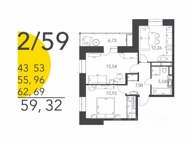 Жить хорошо, а жить в просторной квартире - еще лучше. Монолитно-кирпичный дом комфорт-класса. Просторная квартира 46,2 (49,2) м2. Особенность квартиры: выход окон на Запад, панорамный вид из окна во двор, прихожая 6,35 м2, комната 17 м2, удобная гардеробная комната 5 м2, кухня 11,57 м2, ванная комната 3,95 м2, лоджия 6 м2. Ключи - апрель 2026 года. Жилой комплекс Оптима - масштабный проект комфорт-класса от Группы компаний Премьера. Адрес проекта: Московская область, город Домодедово, микрорайон Востряково, улица Ледовская, участок 31/33. Задача проекта - реновация района 60-х годов постройки и комплексное освоение территории, как итог - создание пространства для комфортной жизни и приятного отдыха. Государственно-частное партнерство администрации г.о. Домодедово и Застройщика квартала Группа компаний Премьера наградило проект одним из самых главных преимуществ - минимальной плотностью застройки квартала. На территории в 22 гектара будет построено 8 домов, два детских сада, рассчитанных на 120 и 160 детей, и школа на 1000 учеников. Плюс просторная территория нового квартала позволит обустроить большое количество спортивных площадок и других общественных пространств. Новый квартал рассчитан на 3600 квартир, 7000 жителей, 5000 м2 коммерческой недвижимости, которая будет размещена на первых этажах жилых домов. Строительство и реализация жилого комплекса в соответствии с 214 Федеральным законом. В отделе по работе с Клиентами у Вас есть уникальная возможность получить информацию обо всех без исключения актуальных предложениях по квартирам в ЖК Оптима на ул. Ледовская, город Домодедово. Консультант отдела по работе с Клиентами ответит на все интересующие Вас вопросы и поможет выбрать лучшее предложение с учётом Ваших возможностей и пожеланий. В отделе по работе с Клиентами предусмотрена возможность ежедневно, в том числе дистанционно и на объекте: 1. Уточнить актуальную информацию о жилом комплексе; 2. Получить консультацию по любым вопросам и операциям с недвижимостью, заказать трейд-ин (обмен недвижимости Клиента на новую квартиру в жилом комплексе); 3. Подать заявку и оформить ипотеку; 4. Выбрать и зафиксировать подходящую для Вас квартиру и цену; Уточнить информацию, договориться о встрече и получить персональное предложение можно по телефону