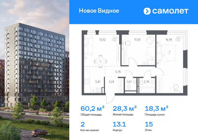 Продается двухкомнатная квартира в жилом комплексе комфорт класса "Домодедово парк" площадью 56.30 кв.м. на 15 этаже 17 этажного дома. Окна выходят во двор и на улицу. - Семейная ипотека без дополнительных комиссий - Специальные ипотечные программы со сниженной ставкой 3,5%. - IT ипотека, военная ипотека, материнский капитал - Скидка до 15% на двушки с ключами - Квартиры на стадии строительства - скидка до 25% - Машиноместо в крытом паркинге - от 599 000 руб. - Улучшенные планировочные решения: обилие света и удобства - Жилой квартал со сложившейся инфраструктурой: остановки общественного транспорта, школа, детские сады, магазины, кофейни, пекарни, салоны красоты и набережная реки Пахры. - ЖК станет вашей малой Родиной или отличной инвестицией. Удобно до Москвы - 5 мин на автобусе от ст. МЦД Ленинская - 15 мин на машине от МКАД. - 25 мин на маршрутке от ст.м. Домодедовская Архитектура и интерьеры - Дома строятся по монолитной технологии с вентилируемыми фасадами. Что гарантирует огнестойкость материала, незначительную усадку здания (можно сразу делать ремонт), хорошие показатели теплосбережения и звукоизоляции, продолжительность срока службы - Высокие потолки, большие кухни, застеклённые лоджии - Просторные подъезды, в которых есть места для хранения коляски и спортивного инвентаря Богатая инфраструктура на территории - Уже открыты 3 детских сада и 2 школьных корпуса - Спортивные площадки, зоны отдыха и зеленые насаждения - Несколько крытых паркингов - На первых этажах сетевые магазины: Магнит, ВкусВилл, Пятерочка, Верный, Ароматный Мир, а также аптеки, салоны красоты, кафе - Ведется строительство поликлиники, пока же принимает посетителей терапевтический кабинет филиала Домодедовской поликлиники - В планах физкультурно-оздоровительный комплекс, торговый центр Идеально для семей с детьми - Помимо детских садов и школ, работают центры раннего развития, секции и кружки - Большая спортивная площадка для занятий футболом и волейболом. Зимой здесь заливают каток и оборудуют теплые раздевалки - Для малышей установлены песочницы, горки, развивающие бизиборды, а для ребят постарше и взрослых есть площадки для игр с мячом, теннисные столы и территория воркаута с тренажерами. Экология и окружение - Жилой квартал раскинулся на берегу реки Пахра. Рядом нет промышленных предприятий, свежий воздух. - Рядом находятся старинные русские усадьбы, детские парки, конный парк Русь. - В радиусе 5-10 километров расположено несколько крупных ТРЦ Vegas, Капитолий и др. О застройщике Под руководством и при участии ГК "Град" построены объекты общей площадью более 600 тыс. кв.м, в том числе клубные форматы и квартиры бизнес-класса. Застройщик известен высоким качеством строительства и отделки и точными сроками сдачи проектов. В 2020 году ГК "Град" стал единственным застройщиком Московской области, получившим Золотой знак "Надежный застройщик России 2020". Квартира в новостройке в селе Домодедово Домодедовского района.