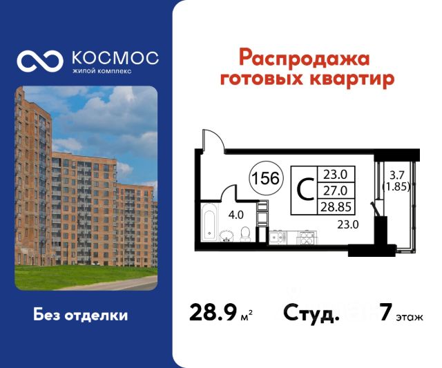 Продаётся студия в сданном доме (Корпус 3), срок сдачи: 2-кв. 2025, общей площадью 28.85 кв.м., на 7 этаже. ЖК "Космос" - новое место для жизни, в котором сочетаются отличная экология, удобное расположение, креативные решения архитектуры и функциональные планировки квартир. Строительство жилого комплекса ведётся при проектном финансировании Сбербанка. ЖК "Космос" расположен в микрорайоне Авиационный (Домодедово), в 24 километрах от МКАД по Каширскому шоссе. Проект будет состоять из 7 корпусов высотой 12 этажей. На первых этажах домов запланировано открытие необходимых для жителей объектов торговой и социальной инфраструктуры, в том числе магазинов, кафе, медицинского центра. В микрорайоне Авиационный также есть всё необходимое для комфортной жизни - здесь находятся детские сады, школы, высшие учебные заведения, магазины, поликлиники и медицинские центры, спортивный клуб, ТЦ "Торговый город". Помимо этого, жители ЖК "Космос" смогут пользоваться развитой инфраструктурой г.о. Домодедово - до него можно добраться за 20 минут на автомобиле или электричке. Одна из особенностей ЖК "Космос" - отличное экологическое состояние локации. В 10 минутах ходьбы от комплекса находится благоустроенный парк "Взлёт" с красивым прудом Лесным, здесь планируется дальнейшее благоустройство территории. Рядом с "Космосом", на площади Гагарина, будут проходить городские мероприятия. Проект отличается удобной транспортной доступностью - до МКАД можно добраться за 20-25 минут. Около жилого комплекса находятся остановки общественного транспорта, в пешей доступности - ж/д станция "Авиационная" Павелецкого направления. На придомовой территории ЖК "Космос" предусмотрено устройство парковочных мест численностью 544 машино-места, в том числе для маломобильных групп населения.