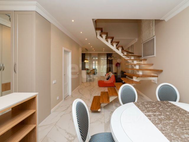 Продается уютный трехэтажный таунхаус, 180 кв.м с качественным ремонтом, полностью меблированный и готовый к проживанию в коттеджном поселке Красные пруды, у реки - в экологически чистом районе. Площадь земельного участка три сотки. До м. Домодедовская на автомобиле 30 мин., на автобусе - 55 мин. В шаговой доступности река Сушка с каскадом рыбных прудов в живописном лесном массиве. Вся территория поселка огорожена забором, видеонаблюдение по всему периметру и на каждой улице, также на детской площадке, спортивной площадке и в зоне отдыха. Дороги асфальтированы, муниципальное уличное освещение, на въезде установлен шлагбаум с видеокамерами. У ворот есть гостевая парковка. Также у таунхауса собственных два машино-места. Магазины расположены вблизи поселка, торговый центр РЭД находится в 150 метрах от въезда. Строится детский сад. Имеются все городские коммуникации, интернет и т.д. Водоснабжение из артезианской скважины, расположенной на территории и обслуживается Домодедовским гор водоканалом. Во внутреннем дворе тауна расположена зона отдыха(беседка 8 кВ.м.), фруктовые деревья и цветы. С обеих сторон таунхауса ведется собственное видеонаблюдение. Дом построен из кирпича, окна ориентированы на 2 стороны: на восток и юго-запад. Есть два балкона и 1 французский балкончик. Планировка включает : 1-й этаж : прихожая с гостевым санузлом, просторная кухня-гостиная с выходом во внутренний огороженный двор. 2-й этаж: холл, гардеробная комната(7кв.м.),спальня с выходом на балкон, большая ванная комната с выходом на второй балкон. 3-й этаж: спальня или гостевая комната, гардеробная комната(7 кВ.м.), ванная комната с душевой кабиной, французский балкончик. Видеодомофоны установлены на 1-м и 2-м этажах. Вся сантехника и бытовая техника достойных европейских марок: Blanco, Bosch, Sharp, Timo. Индивидуальное газовое отопление. Газовый котел немецкого производителя VAILLANT. Теплые полы на всех этажах. Отопление водяное. Мебель итальянская( из натурального дерева). Лестничные марши между этажами выполнены из монолитного железобетона с облицовкой керамической плиткой. Очень качественная отделка стен на всех этажах, выполнена декоративная штукатурка стен Карта мира, которая не требует в дальнейшем ремонта. Юридический статус: один взрослый собственник, в собственности более 7 лет. Продажа в связи с переездом. Дополнительные вопросы по телефону. Таунхаус от собственника (частник) в деревне Красное Домодедовского района.