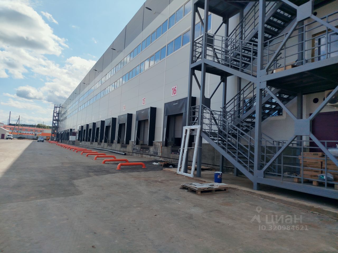 Перед складом большая парковка для легковых и грузовых автомобилей.