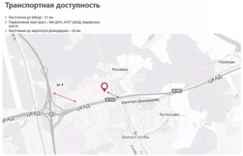 Объект находится на юге МО (Домодедово) рядом с Каширским шоссе. Расстояние до МКАД составляет 31 км.