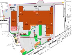 — охраняемая парковка с удобным подъездом и площадкой для маневрирования фур.