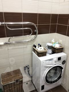 Кухня оснащена необходимой бытовой техникой, включая холодильник и микроволновую печь. Ванная комната совмещенная, с современной сантехникой и стиральной машиной.