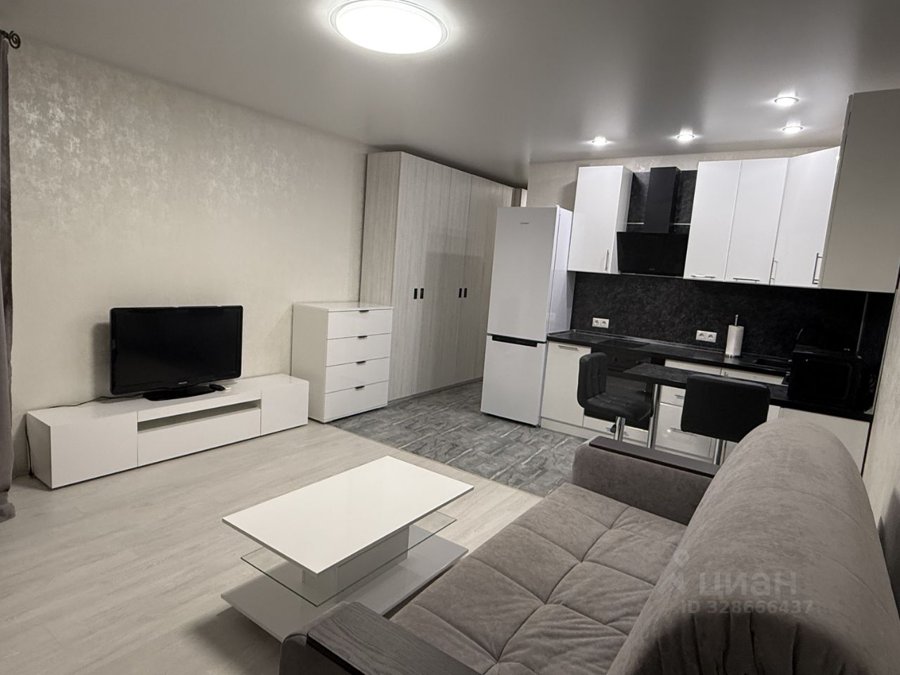В квартире сделан евроремонт, что придаёт ей современный и стильный вид. Студия полностью меблирована: на кухне и в комнате есть всё необходимое для комфортного проживания. В ванной комнате установлена ванна, что создаёт дополнительные удобства. Из техники в вашем распоряжении холодильник, телевизор и стиральная машина. Также имеется доступ в интернет.