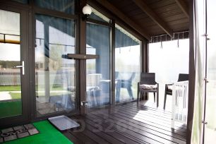 В доме 3 отдельных спальных места: в кухне-гостиной расположен удобный диван, а также двуспальная кровать в отдельной нише. В спальне стоит двуспальная кровать.