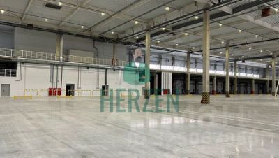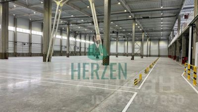 Высота складской части от пола до низа конструкций составляет 12,55 м, под складской зоной (антресолью) 5,12 м, что позволяет производить обработку грузов под антресолью как погрузчиками, так и ричтраками.