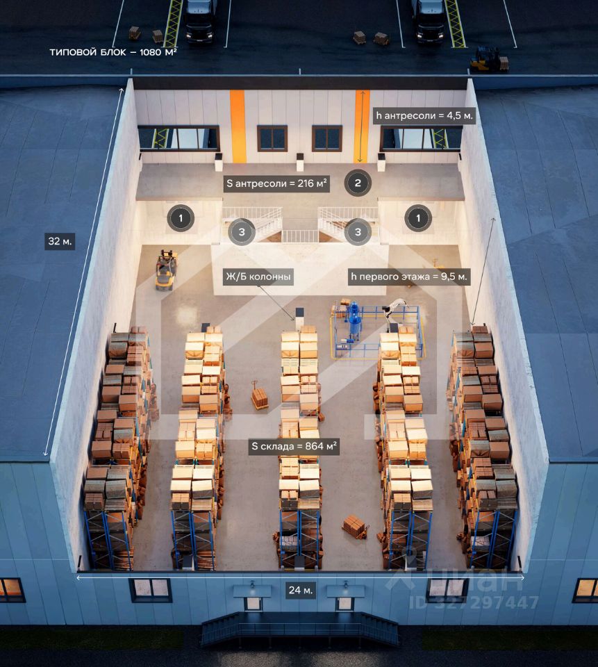 Складская площадь: 864 кв. м.