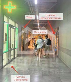 -арендаторы: "Пятерочка", пункты выдачи "Озон", "WILDBERRIES", "Яндекс Маркет", Аптека "Здравсити", Студия красоты, магазин "Мой Мясной", Оптика, Игровая комната, Пивной магазин "Бутылка", банкомат "Тинькофф", водомат "Живая вода";
