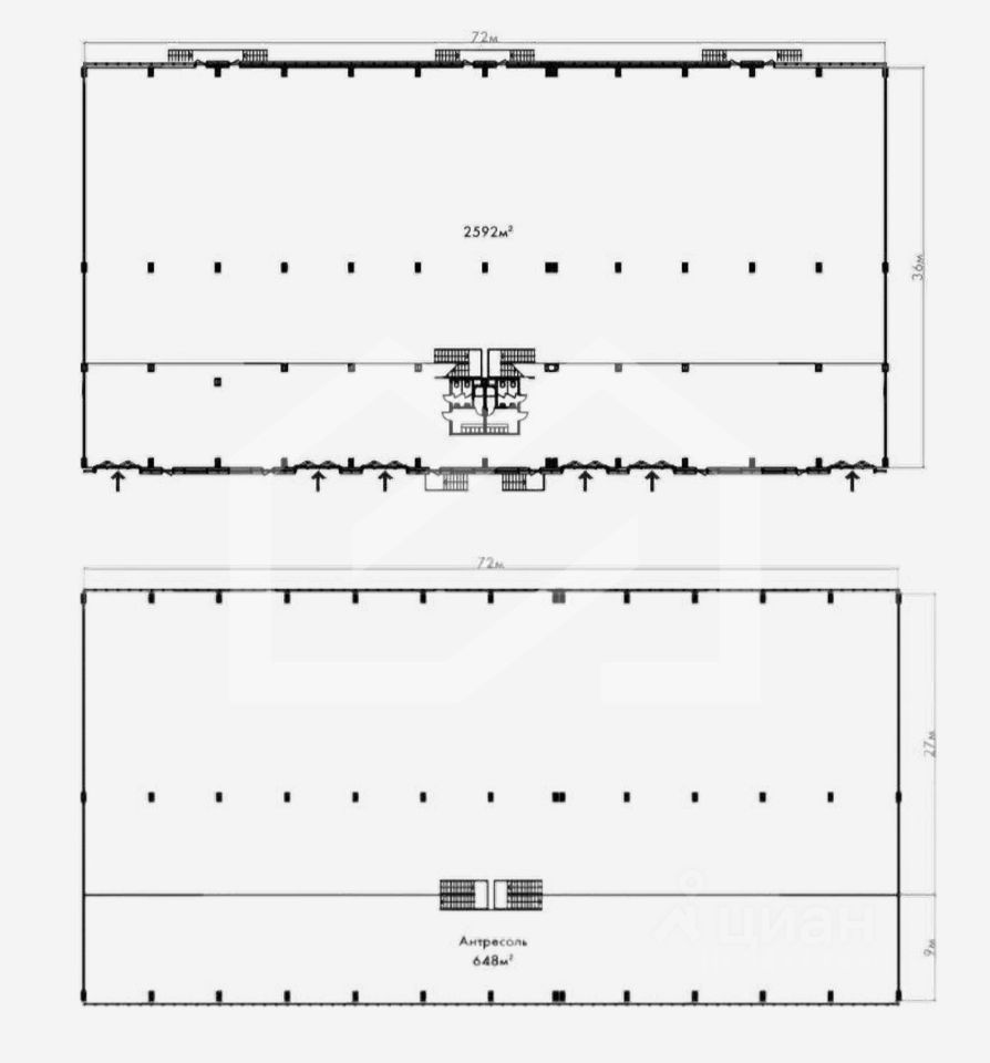 Высота потолка: 9.5 м.
