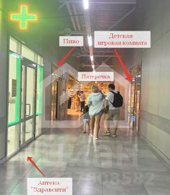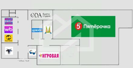 -арендаторы: "Пятерочка", пункты выдачи "Озон", "WILDBERRIES", "Яндекс Маркет", Аптека "Здравсити", Студия красоты, магазин "Мой Мясной", Оптика, Игровая комната, Пивной магазин "Бутылка", банкомат "Тинькофф", водомат "Живая вода";