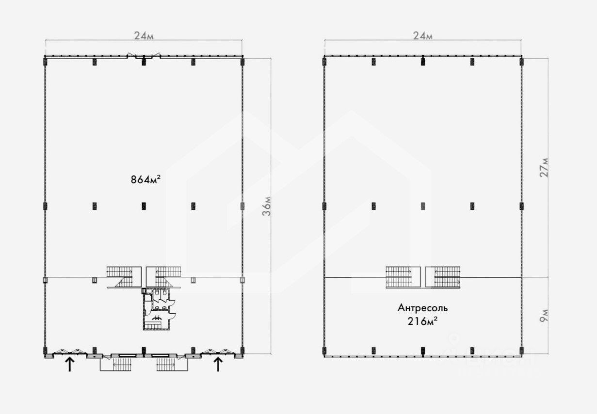 Складская площадь: 864 кв. м.