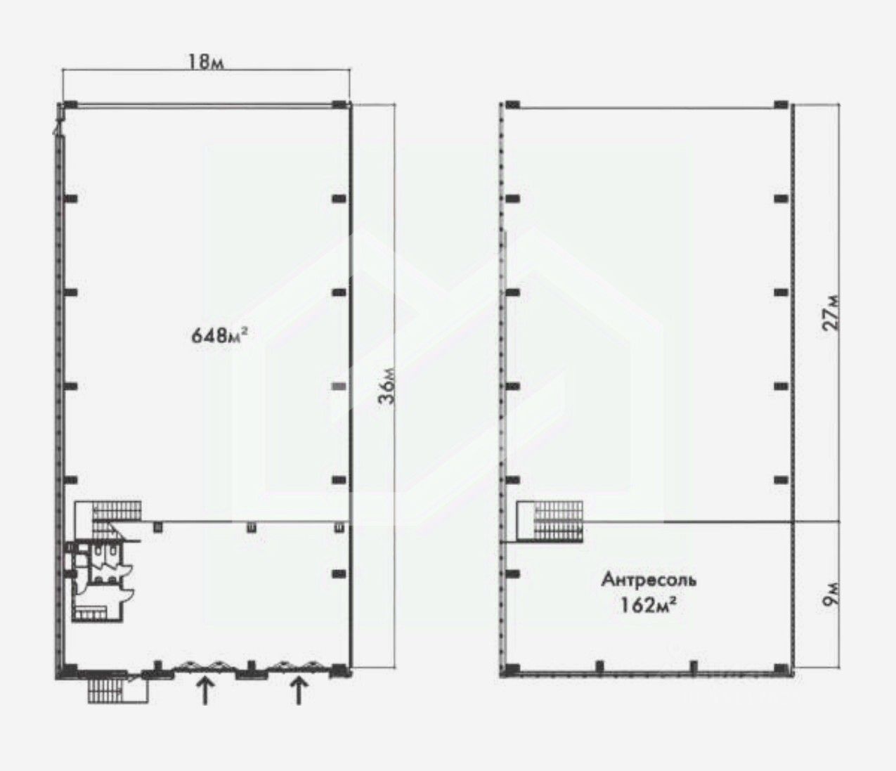 Складская площадь: 648 кв. м.