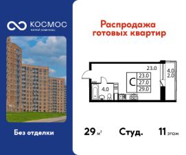 Продаётся студия в сданном доме (Корпус 3), срок сдачи: 2-кв. 2025, общей площадью 29.00 кв.м., на 11 этаже.