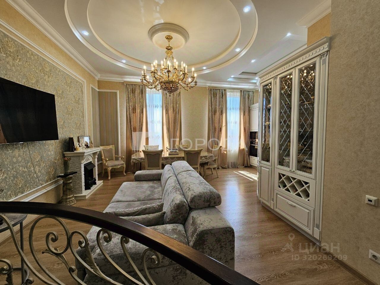 И вот вы в просторной гостиной с высоким потолком (3,5м). Сюда приятно пригласить друзей, провести время с семьей, ведь места хватит всем.