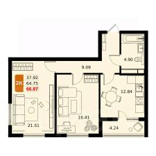 Продается двухкомнатная квартира в жилом комплексе комфорт класса "Домодедово парк" площадью 66.87 кв.м на 12 этаже 17 этажного дома. Квартира с предчистовой отделкой (whitebox)