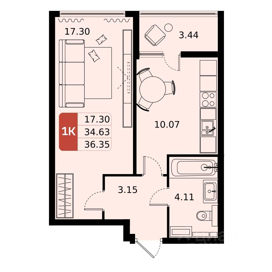 Продается однокомнатная квартира в жилом комплексе комфорт класса "Домодедово парк" площадью 36.35 кв.м. на 10 этаже 17 этажного дома. Окна выходят во двор и на улицу.