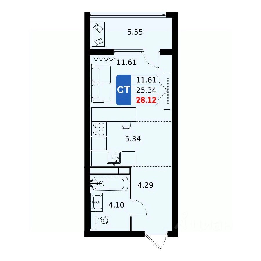 Продается студия в жилом комплексе комфорт класса "Домодедово парк" площадью 28.12 кв.м. на 8 этаже 17 этажного дома. Окна выходят во двор и на улицу.