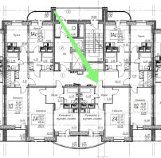 Монолитно-кирпичный дом комфорт-класса. Просторная квартира 45,81 (48,23) м2. Особенность квартиры: выход окон на Запад, панорамный вид из окна во двор, прихожая 5,5 м2, комната 16,4 м2, удобная гардеробная комната 4,7 м2, кухня 12 м2, ванная комната 4,4 м2, лоджия 4,85 м2. Панорамные виды, окна в пол. План квартиры на этаже 2А.