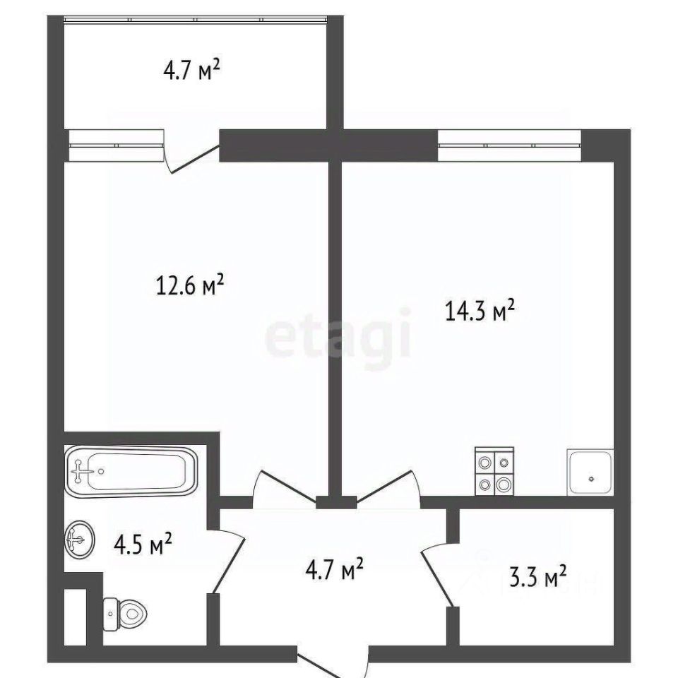 - Просторная кухня-гостиная 14,3 м²: не просто кухня, а настоящее сердце квартиры, где легко разместится и обеденный стол для гостей, и удобный диван для отдыха.