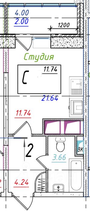 21,64 м²
