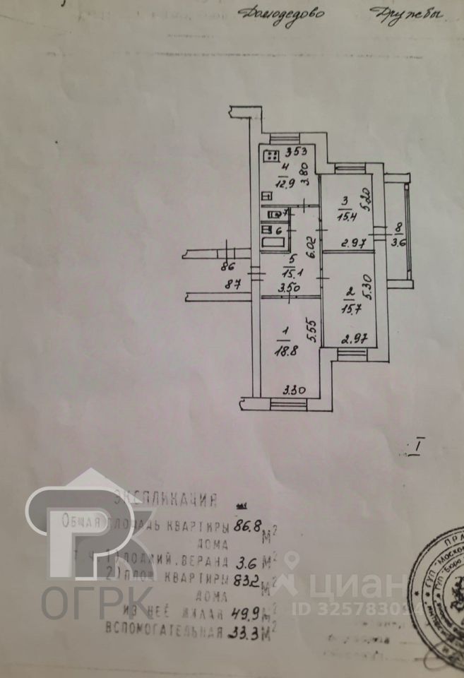 Общая площадь квартиры — 86 м², расположена в живописном Западном районе города Домодедово.