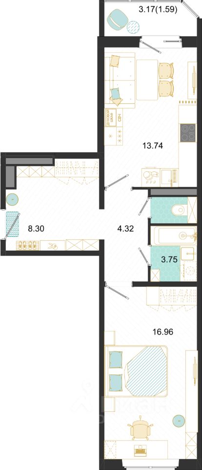 48,66 м²