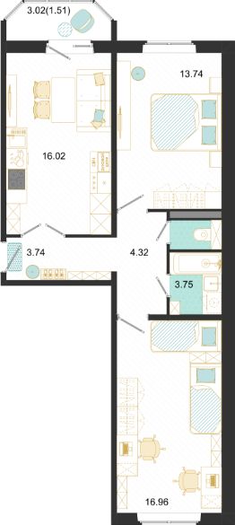 60,04 м²