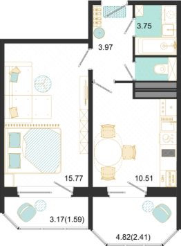 Продаётся 1-комнатная квартира в строящемся доме (Текстильщиков, 45), срок сдачи: I-кв. 2028, общей площадью 38 кв.м., на 8 этаже.