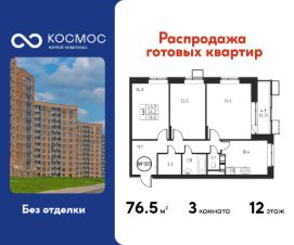 Продаётся 3-комнатная квартира в сданном доме (Корпус 5), срок сдачи: 2-кв. 2025, общей площадью 76.50 кв.м., на 12 этаже.