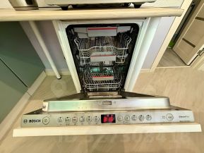 Полностью заменена проводка и электрика (отдельные линии на всю технику, щиток утоплен в стену с дорогими автоматами).