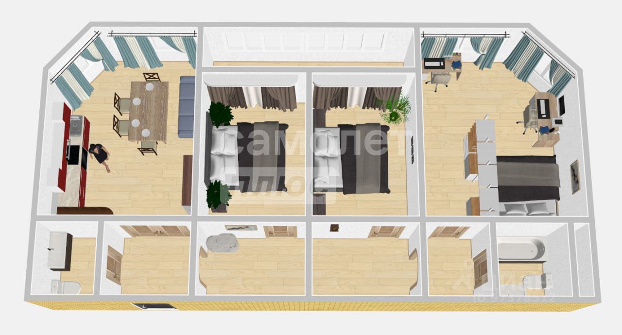 Идеальный формат для большой семьи, которая ищет готовое жилье: у каждого появится свое личное пространство, а бытовые вопросы решаются без суеты.