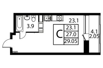 Продаётся студия в сданном доме (Корпус 3), срок сдачи: 2-кв. 2025, общей площадью 29.05 кв.м., на 7 этаже.