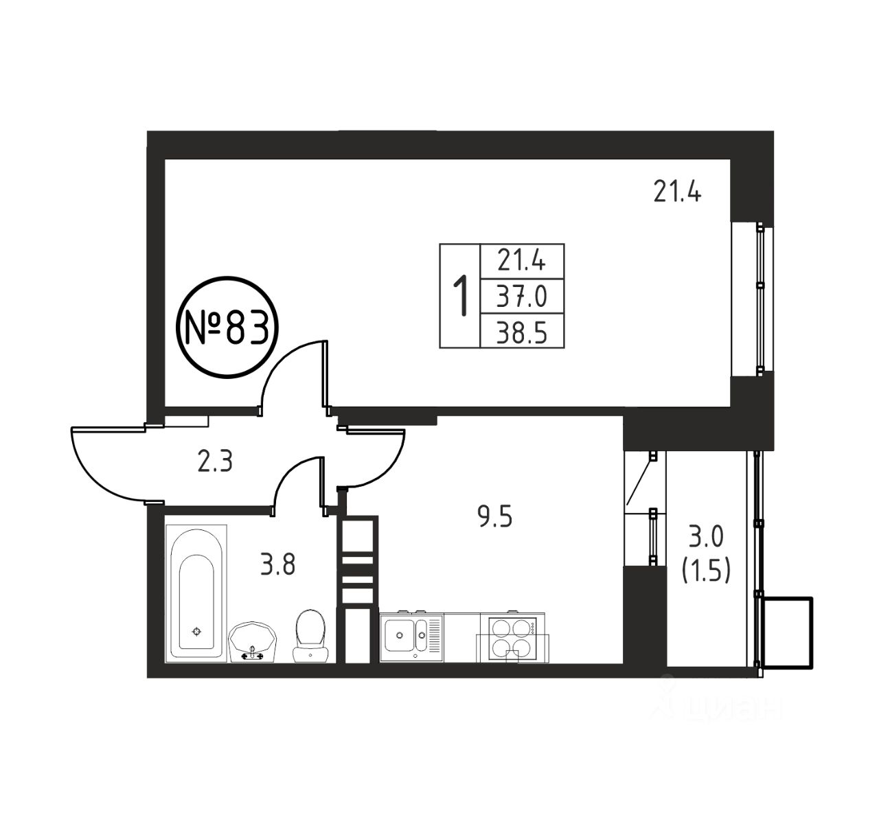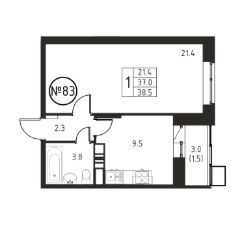 Продаётся 1-комнатная квартира в сданном доме (Корпус 6), срок сдачи: 2-кв. 2025, общей площадью 38.50 кв.м., на 10 этаже.