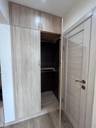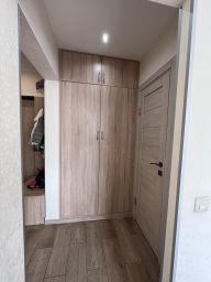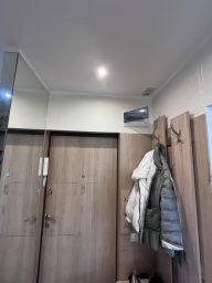 Температурную атмосферу в квартире поддерживает мощный кондиционер. Встроенные шкафы в коридоре и на лоджии с достаточным пространством мест хранения.