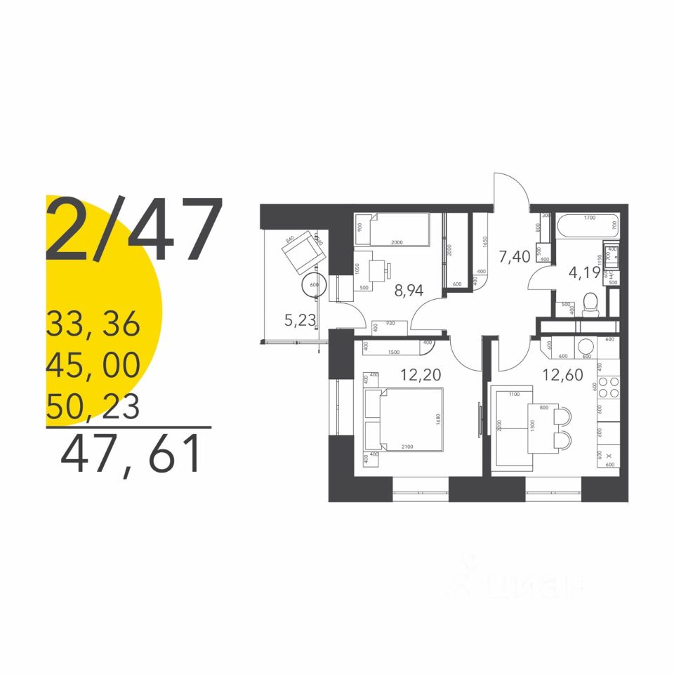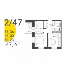 Монолитно-кирпичный дом комфорт-класса. Уютная 2-х комнатная квартира 47,61(50,23) м2. Особенность квартиры: выход окон на две стороны света Север и Запад, панорамный вид из окна во двор, прихожая 7,4 м2, комнаты 12 и 9 м2, кухня 12,22 м2, ванная комната 4,2 м2, лоджия 5,23 м2.