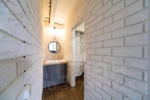 На первом этаже расположена шикарная кухня-гостиная 40 кв.м,обустроенная кухонным гарнитуром "Мария",встроенной техникой такой как:посудомоечная машина , духовой шкаф, микроволновка.Вся сантехника новая и хорошего качества.Так же сан.узел выполнен качественными материалами и имеет удобное расположение.