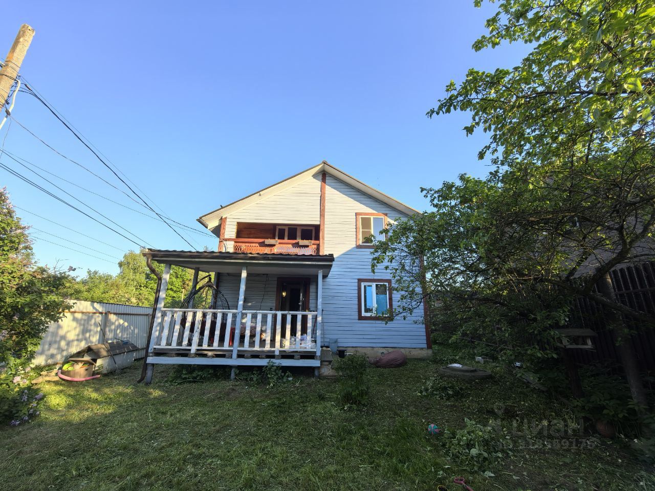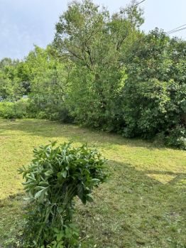 Растут кустарники: крыжовник, ежевика. Плодовые деревья. Декоративные кустарники по периметру участка. За домом разбит огород, к которому нужно проявить уход. Установлена теплица из поликарбоната. Для полива организован летний водопровод.