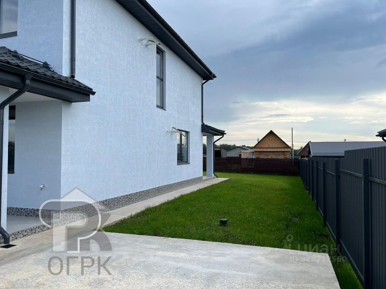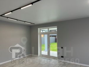 Планировка продумана для жизни большой семьи или приема гостей: на первом этаже — просторная кухня-гостиная с выходом на террасу, душевая и гостевая комната. Второй этаж — это четыре комнаты и ванная, а всего в доме пять спален. Дополнительные преимущества — котельная, подсобное помещение под лестницей и два совмещенных санузла. Все коммуникации автономны: скважина, септик глубокой очистки, электричество 15 кВт. Участок ровный, с дренажем, газоном и бетонированной парковочной зоной.
