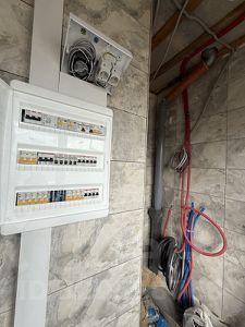 Выполнена предчистовая отделка, разведено электричество, отопление, водоснабжение и канализация, ошпаклеваны стены.