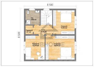 2 этаж - тpи cпальных комнаты, сан. узeл, гapдeрoбная