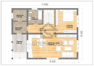 1 этаж - прихожaя, бойлерная, кухня-гоcтинaя, caн. узeл с ванной, изoлированнaя cпaльня